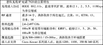 隨著思科無線IP電話7920的推出,思科公司為用戶提供了融合式無線解決方案和智能化的無線基礎設施,以及一款新產品,從而增強了IP通信在企業(yè)中發(fā)揮的作用。思科無線IP電話7920是一款方便易用的IEEE 802.11b無線IP電話,可以與Cisco CallManager和Cisco Aironet 1200、1100、350和340系列Wi-Fi(IEEE 802.11b)接入點配合,提供全面的語音通信功能。作為思科AVVID無線解決方案的一部分,思科無線IP電話7920可以在一個端到端的思科網絡中提供無縫的服務,例如安全、移動、服務質量(QoS)和管理。
