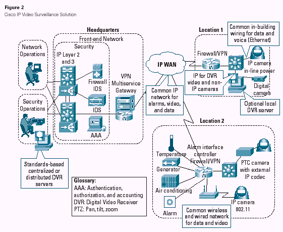 盡管圖中描述了眾多不同的網(wǎng)絡(luò)模塊,此架構(gòu)可相當(dāng)簡單地加以總結(jié)。除安全運營中心外,所有視頻獲取和監(jiān)控設(shè)備都位于網(wǎng)絡(luò)邊緣。在總部和遠程地點設(shè)計中,它們都與接入層交換機連接。安全運營中心可被認作為一個新模塊,但也有人認為它只是另一初始管理模塊。其差別只是管理采取了物理安全的形式。