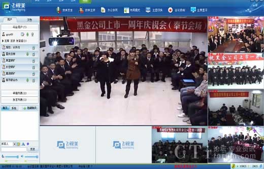 首先,飛視美為總部及5個辦事處分別安裝了飛視美視頻會議軟件,將慶典場地劃分為1個主會場和5個分會場,總部與分支機構(gòu)的員工都在當(dāng)?shù)貐⒓討c典,通過飛視美進行在線演講與總結(jié)、相互問候、相互祝福、表演節(jié)目、進行互動游戲等,這是一種“高科技互動”。其次,為了達(dá)到更好的視頻溝通效果,飛視美為黑金實業(yè)量身定制了一套硬件設(shè)備方案。根據(jù)各會場的面積、參與人數(shù)等情況,提供了一整套硬件參考:包括攝像設(shè)備、音響設(shè)備、功效設(shè)備等,并派出技術(shù)團隊專門赴重慶為客戶進行設(shè)備搭建和調(diào)試,保障了此次慶典的最佳效果。