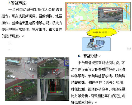 由于海量視頻信息的出現(xiàn),要求平臺(tái)能利用智能視頻技術(shù)來(lái)解決傳統(tǒng)視頻監(jiān)控系統(tǒng)所無(wú)法解決的問(wèn)題。如智能檢索、人臉識(shí)別、車牌識(shí)別、運(yùn)動(dòng)軌跡跟蹤、行為模式分析等,變“被動(dòng)監(jiān)控”為“主動(dòng)監(jiān)控”,以提升視頻監(jiān)控系統(tǒng)的應(yīng)用成效,降低管理成本。