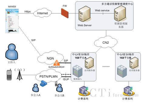 所謂“交互式電話會議”是指由分布在不同地方的與會者,通過固定電話或移動電話或數(shù)字電話終端等通信終端,采用約定的方式(呼入方式或呼出方式)進(jìn)入電話會議狀態(tài),主持人和與會者彼此能自由交談,自由發(fā)言的業(yè)務(wù)。新太交互式電話會議服務(wù)系統(tǒng)對“交互”二字的體現(xiàn)主要表現(xiàn)在語音的交互及控制的交互兩方面。語音的交互是指會議主持人以及與會者不僅可以聽到會議現(xiàn)場別人的發(fā)言,還可以自由地發(fā)表自己的見解;控制的交互性是指會議主持人具有對整個會議的控制權(quán),有權(quán)加入新與會者或強(qiáng)行拆除某與會者,有權(quán)決定是否對會場錄音等。此外,在交互式電話會議的定義上本系統(tǒng)還延伸出多種會議模式,如允許申請發(fā)言的廣播式會議、點名發(fā)言的廣播式電話會議、分組討論會議等。