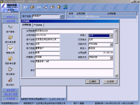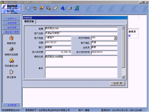 附:有關(guān)易達 2000 CRM軟件界面: