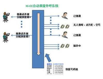 圖:Hi-CC自動(dòng)批量外呼工作示意圖