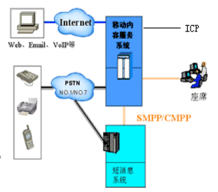 CTI技術(shù)是計算機電信集成技術(shù),它的信令網(wǎng)關(guān)化、媒體處理網(wǎng)關(guān)化、標(biāo)準(zhǔn)接口、可編程等特點非常適合移動內(nèi)容服務(wù)和聲訊服務(wù)的需求。因此,在移動內(nèi)容服務(wù)規(guī)范中,主要技術(shù)依據(jù)就是CTI技術(shù)和SMS技術(shù)。