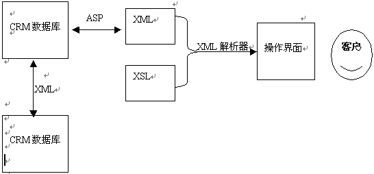 包括客戶資料,銷售報(bào)表等相關(guān)的客服信息都存儲(chǔ)在數(shù)據(jù)庫(kù)中,通過(guò)ASP應(yīng)用程序取出需要的數(shù)據(jù)生成符合條件的XML文檔,再通過(guò)安裝在服務(wù)器端的XML解析器按照預(yù)先設(shè)定的排版樣式XSL解析XML文檔,最后生成符合條件的HTML格式的CRM操作界面呈現(xiàn)在客戶面前。客戶數(shù)據(jù)可能來(lái)自不同的數(shù)據(jù)庫(kù),并且都有各自不同的復(fù)雜格式。但客戶與這些數(shù)據(jù)庫(kù)間只通過(guò)一種標(biāo)準(zhǔn)語(yǔ)言進(jìn)行交互,那就是XML。由于XML的自定義性及可擴(kuò)展性,它足以表達(dá)各種類型的數(shù)據(jù)?蛻羰盏綌(shù)據(jù)后可以進(jìn)行處理,也可以在不同數(shù)據(jù)庫(kù)間進(jìn)行傳遞。