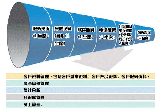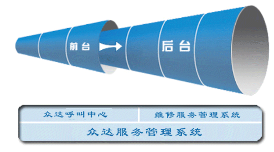 眾達客服管理系統(tǒng)分為呼叫中心系統(tǒng)和維修服務管理系統(tǒng)兩部分,呼叫中心系統(tǒng)主要負責電話接入,對話務員接聽電話的全過程進行管理、記錄、統(tǒng)計以及實現(xiàn)自動語音應答、自動呼叫分配等智能功能;維修服務管理系統(tǒng)(B/S結(jié)構(gòu))主要負責記錄通過"呼叫中心"得到的客戶資料,跟蹤處理維修服務流程,記錄和統(tǒng)計服務數(shù)據(jù)。