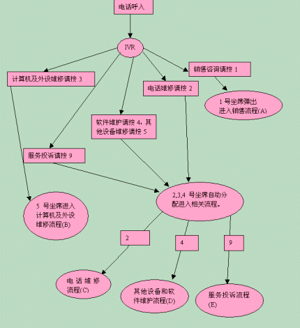 在交互式語音應答系統(tǒng)IVR的幫助下,各服務流程有條不紊地進行,每個職能部門管理自己部門的流程,提供全方位的客戶所要求的服務。下面我們以銷售咨詢?yōu)槔纯催@個簡單的工作流程。