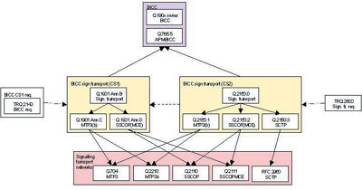 當(dāng)前網(wǎng)絡(luò)中的SS7信令的下3層采用MTP,而BICC和GCP定義了多種傳輸技術(shù)。圖3是BICC協(xié)議所支持的各種傳輸技術(shù)。