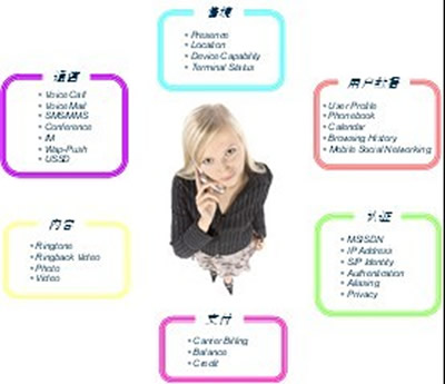 三是開放電信能力,運營商手里有很多得天獨厚的資源,如SMS、MMS、語音等可靠的通信服務,用戶數(shù)據(jù),情境,認證等。這些是運營商獨有的資源,在此基礎上開發(fā)出來的應用也是獨一無二的。