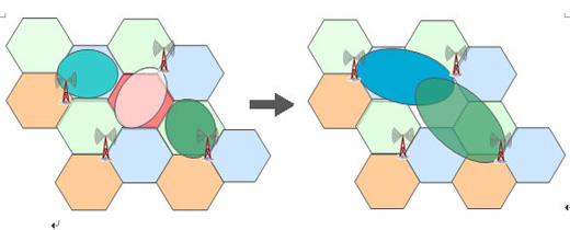 一旦出現(xiàn)退服,OSS會協(xié)調(diào)問題基站周邊基站的扇區(qū)來補償退服的無線覆蓋。如下圖,參與補償?shù)幕緯{(diào)整下行發(fā)射功率、天線傾角等來補償退服區(qū)域,甚至調(diào)低上行信號接收門限變相地擴大該扇區(qū)覆蓋以接入更多退服區(qū)域的終端。當然,由于扇區(qū)的調(diào)整,會造成鄰區(qū)關(guān)系變化、切換邊界變化、干擾增加,這些就需要OSS提供的其他功能ANR、MRO、ICIC來聯(lián)合優(yōu)化。