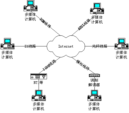 IBM PC及兼容機,Pentium 200 CPU、 64M RAM配置,安裝Windows 98/Windows NT/Windos 2000其中之一的操作系統(tǒng),配置全雙工的聲卡,并配備了音響、麥克風。
