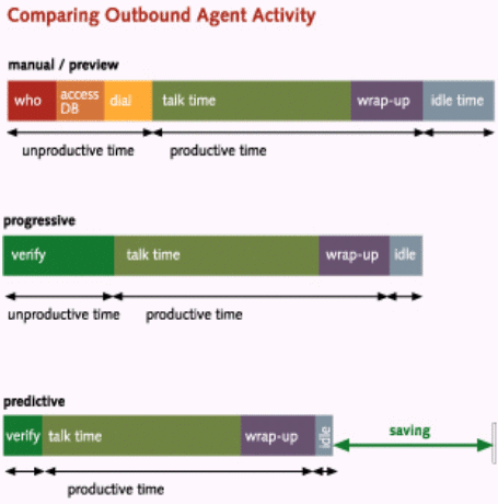 預(yù)測撥號 是一種用來在一個(gè)短的時(shí)段中對大量客戶進(jìn)行聯(lián)絡(luò)的一種先進(jìn)的步進(jìn)模式。使用預(yù)測撥號,坐席代表僅僅處理成功的呼叫。預(yù)測撥號實(shí)現(xiàn)了最高水平的效率。預(yù)測撥號使用精密復(fù)雜的技術(shù)預(yù)測沒有被應(yīng)答的呼叫的一個(gè)百分比和什么時(shí)候坐席代表將完成正在進(jìn)行著的呼叫。預(yù)測撥號將自動撥電話號碼并對其中一些呼叫會失敗做好了準(zhǔn)備。使用預(yù)測撥號,坐席代表每小時(shí)的通話時(shí)間大約在40到45分鐘。