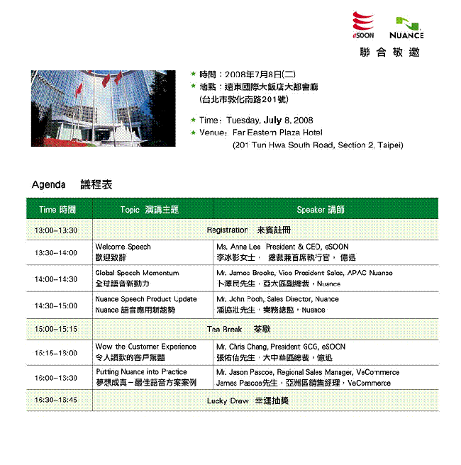 eSOON & Nuance 誠摯地歡迎您蒞臨指導!