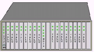 見上圖 DAS120主機(jī)所用的機(jī)框?yàn)?9英寸標(biāo)準(zhǔn)機(jī)框,可直接裝入19英寸機(jī)柜,也可放置在桌面。機(jī)框共有20個槽口,兩邊可插兩塊電源板PSU,中間插數(shù)字中繼接口板HDT4,其余16個槽可插15塊模擬用戶板8ALU(或8ATU)。8ALU每塊板為8路,一個機(jī)框總共120路。