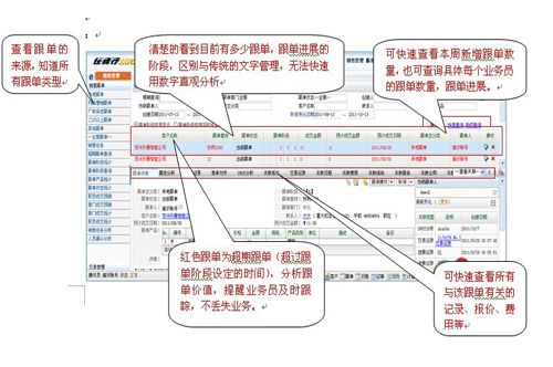 2、通過軟件對(duì)跟單的業(yè)務(wù)進(jìn)展記錄固化,清晰掌握該跟單由誰創(chuàng)建、誰去談單、報(bào)價(jià)有無競(jìng)爭(zhēng)對(duì)手、有無難點(diǎn)等進(jìn)展一覽無余,避免了傳統(tǒng)的電話、面對(duì)面溝通。