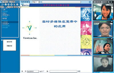 其次,由于寬帶網(wǎng)絡(luò)最主要的功能是可以大批量地傳輸數(shù)據(jù)信息,因此,通過計算機來傳輸可視信息應(yīng)該是未來最易于普及的一項業(yè)務(wù)。目前,優(yōu)創(chuàng)科技已經(jīng)有一套完善的寬帶多媒體通信解決方案,可以為用戶提供一套軟件方案,并且對用戶端的計算機要求也不高,只需要PⅡ 400以上、64M RAM即可運行。
