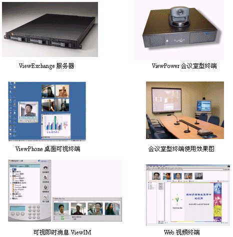 如下圖所示,ViewOffice由會議室型終端ViewPower,客戶端軟件ViewPhone,客戶端即時消息軟件ViewIM,多點控制服務器ViewExchange ,目錄及管理服務器ViewNMS五部分構成,是一種面向企業(yè)用戶,基于IP網(wǎng)絡的高可靠性,高性能的多點實時交互式視頻會議系統(tǒng)。