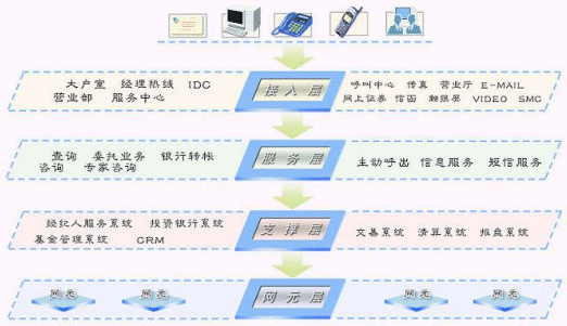 證券客戶服務(wù)系統(tǒng)面向用戶提供電話、傳真、網(wǎng)絡(luò)等方式的咨詢、查詢、委托、銀行轉(zhuǎn)帳、自動(dòng)業(yè)務(wù)等業(yè)務(wù)功能。系統(tǒng)以提供“個(gè)性化、社會(huì)化、信息化”服務(wù)為重要特征,具有“滿足未來(lái)業(yè)務(wù)發(fā)展需要”、“滿足實(shí)時(shí)處理”的能力。系統(tǒng)在設(shè)計(jì)、實(shí)現(xiàn)上,以具有先進(jìn)技術(shù)和高穩(wěn)定性的呼叫中心平臺(tái)為基礎(chǔ),竭力為證券業(yè)務(wù)運(yùn)營(yíng)商建立一個(gè)強(qiáng)大、開放、靈活的業(yè)務(wù)服務(wù)系統(tǒng),更好地滿足證券用戶日益增長(zhǎng)的各種新的服務(wù)需求,保持證券企業(yè)在市場(chǎng)競(jìng)爭(zhēng)中的優(yōu)勢(shì)。