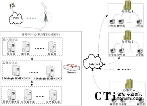 該培訓(xùn)學(xué)院遍布全國(guó)的124個(gè)辦事處,都通過(guò)IP網(wǎng)絡(luò)連接到學(xué)院的呼叫中心平臺(tái)之上,辦事處人員可以采用固定電話、移動(dòng)電話、IP電話等多種方式與呼叫中心平臺(tái)進(jìn)行通信,從而能夠直接接聽(tīng)呼入來(lái)電,為客戶提供及時(shí)的服務(wù);另外還可以調(diào)用總部潛在客戶的有關(guān)數(shù)據(jù),進(jìn)行有針對(duì)性的客戶開發(fā)。