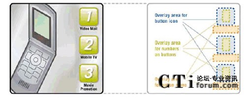互作用提出了更進(jìn)一步的挑戰(zhàn)。能夠使用戶(hù)訪問(wèn)多個(gè) TV 頻道以及獲得其他服務(wù)的視頻門(mén)戶(hù),是一個(gè)很好的研究實(shí)例。視 頻門(mén)戶(hù)顯示了基于每個(gè)用戶(hù)活動(dòng)、訪問(wèn)權(quán)限、服務(wù)描述等的服務(wù)菜單。一般來(lái)說(shuō),菜單是有限列表,用戶(hù)通過(guò)在手持終端 按下相應(yīng)的鍵來(lái)進(jìn)行選擇 (圖2.通過(guò)示意圖說(shuō)明了動(dòng)態(tài)菜單的映射方法)。為了創(chuàng)建菜單,應(yīng)用程序控制了基礎(chǔ)架構(gòu),而該 基礎(chǔ)架構(gòu)動(dòng)態(tài)地生成了有限列表,并在當(dāng)前的視頻流頂端顯示為一個(gè)靜態(tài)覆蓋圖。相同技術(shù)可用于顯示基于用戶(hù)活動(dòng)或位 置進(jìn)行品牌和廣告宣傳的 logo 或文本。