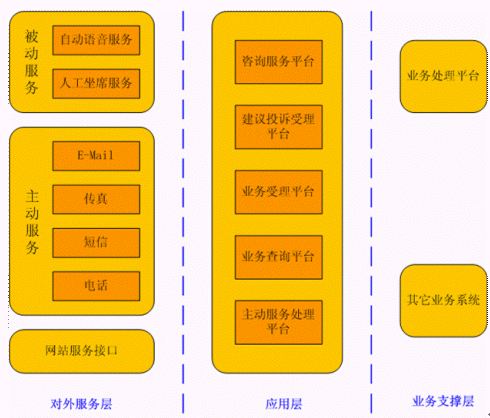 該系統(tǒng)提供5*8小時人工服務(wù)和7*24小時自動服務(wù),提供政策法規(guī)咨詢、辦事指南、信息查詢、受理投訴舉報(bào)、進(jìn)行社會調(diào)查五大功能;預(yù)留電話職介和受理勞動保障相關(guān)電話業(yè)務(wù)兩大功能,同時提供輔助功能,包括:資料庫建設(shè),信息定制與發(fā)布,內(nèi)部管理等。