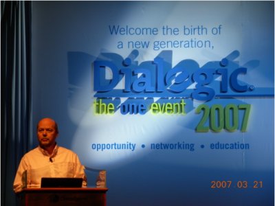 大會(huì)首先由Dialogic公司的全球資深副總裁 James Besley致辭。“我們回來了!”,James一句意味深長的開場(chǎng)白引來了全場(chǎng)長時(shí)間的熱烈鼓掌。是的,曾幾何時(shí),Dialogic在全球CTI領(lǐng)域是何等的輝煌,上個(gè)世紀(jì)九十年代他們?nèi)〉眠^驕人的業(yè)績(jī),占據(jù)了全球市場(chǎng)的絕大部分份額,稱之為當(dāng)時(shí)CTI行業(yè)的先驅(qū)和領(lǐng)導(dǎo)者實(shí)不為過。