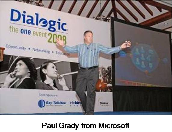 第二天上午,會(huì)議以Dialogic總裁兼CEO Nick Jensen強(qiáng)有力的演講開始,隨后是Dialogic執(zhí)行副總裁兼COO Tim Murray和Dialogic市場(chǎng)高級(jí)副總裁Jim Machi。 面向整個(gè)宴會(huì)廳的與會(huì)者,全天的會(huì)議包括了來(lái)自Dialogic產(chǎn)品線總監(jiān)James Rafferty和Dialogic企業(yè)產(chǎn)品線市場(chǎng)經(jīng)理Bud Walder等內(nèi)部演講者,和來(lái)自Yankee Group, PT. Excelcomindo Pratama 和Microsoft等外部演講者們激動(dòng)人心的演講。會(huì)議結(jié)束時(shí),由我們的合作伙伴Bay Talkitec贊助,有三個(gè)幸運(yùn)贏家贏得了iPod touch 16G,iPod nano 8G和4G。