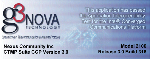 近日,Nexus CTMP for ICCP(The Intel Converged Communications Platform)3.0軟件在G3 NOVA Testing Lab通過了測試。