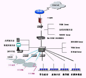 BRAS的驗(yàn)證才能上網(wǎng)。校園網(wǎng)系統(tǒng)應(yīng)能覆蓋整個(gè)校園,并連接所有的學(xué)院和辦公區(qū),為大學(xué)開展現(xiàn)代化的經(jīng)營管理和辦公教學(xué)提供一個(gè)具有開放式體系結(jié)構(gòu)的計(jì)算機(jī)網(wǎng)絡(luò)系統(tǒng),具有高度的可靠性和可擴(kuò)展能力。對(duì)校園網(wǎng)內(nèi)的每一用戶(老師或?qū)W生)、閱覽室、圖書館、多媒體教室等都能夠進(jìn)行單獨(dú)的管理、計(jì)費(fèi)(時(shí)長、時(shí)段、包月、流量)、驗(yàn)證、授權(quán)(瀏覽、下載、收發(fā)信件、網(wǎng)站屏蔽)、共享、帶寬分配。尤其對(duì)學(xué)生和老師區(qū)別的管理非常獨(dú)特。