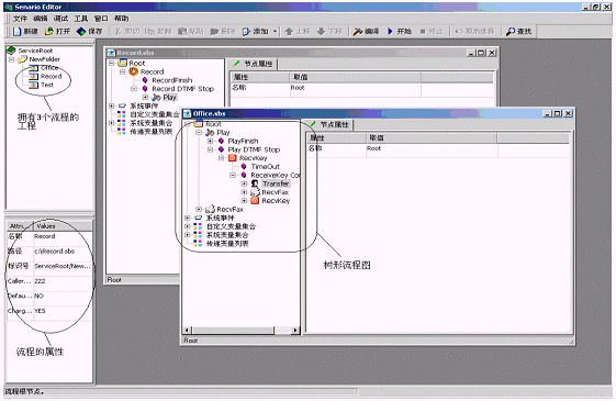 ·系統(tǒng)提供流程調(diào)試功能,調(diào)試器提供事件模擬器用來模擬"電話按鍵"以及其他與硬件相關的"事件"?梢栽跊]有語音板卡條件下實現(xiàn)摘機、語音播放、傳真收發(fā)、座席轉(zhuǎn)接等操作;