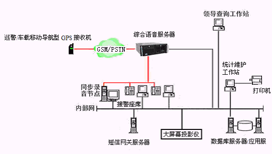 巡邏民警,報警信息通過GSM網絡傳送到110指揮調度中心;