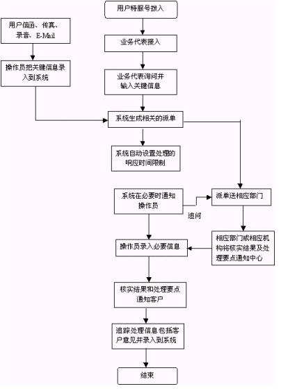 投訴舉報的受理可以自動完成,提示用戶輸入投訴的部門和工作人員的代號。也可以人工完成,直接將投訴對象告訴話務(wù)員。