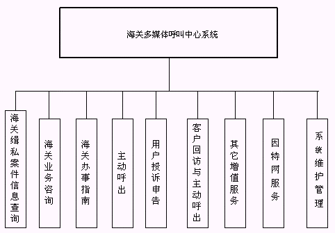 海關多媒體呼叫中心系統(tǒng)的功能結(jié)構(gòu)如下圖所示: