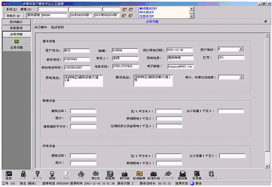 客戶信息包括客戶編號、客戶名稱、聯(lián)系電話、地址、所屬地區(qū)、地區(qū)編號、用戶人口數(shù)、樓層等多項,接聽客戶呼入電話,由座席代表記錄信息形成檔案,也可采用更為主動的呼出方式來確認(rèn)、核實、補(bǔ)充檔案。