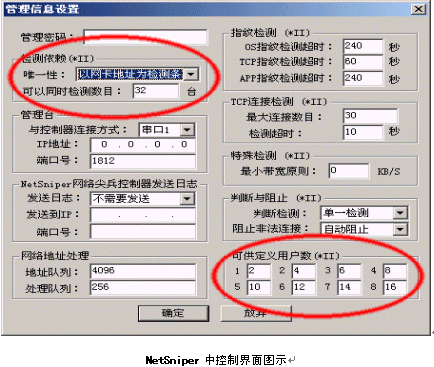 現(xiàn)有的網(wǎng)絡運營商在提供接入服務的時候,通常以最初登記的計算機數(shù)量為網(wǎng)絡費用計算標準或給定一定帶寬的專線收取包月費用。至于用戶以后增加多少臺計算機則不聞不問,尤其是撥號網(wǎng)絡中(ISDN,ADSL)更加沒有相應手段予以控制,因此造成很大的費用流失。針對網(wǎng)絡運營商細化管理的需求,我公司在NetSniper中特意加入了精確控制同一網(wǎng)絡接口上用戶數(shù)量的功能。