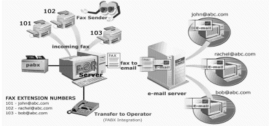 每一個(gè) e-mail地址都可以對(duì)應(yīng)一個(gè)獨(dú)立的傳真分機(jī)號(hào)碼,當(dāng)有傳真呼入時(shí),自動(dòng)地將傳真發(fā)送給指定的接收者