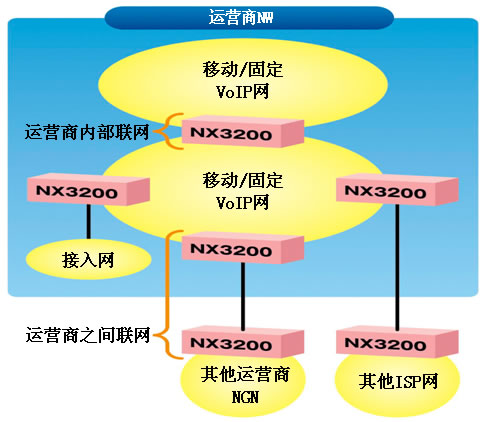 NX3200(以下簡稱「NX3200」)」上,內(nèi)置了行業(yè)首例運營商級SIP-ALG(注2)轉(zhuǎn)換功能。內(nèi)置本功能后,可以吸收不同通信運營商的通信方式差異,實現(xiàn)無縫相互聯(lián)網(wǎng)。這樣一來,通過「NX3200」可以讓提供多種多樣服務及擁有不同網(wǎng)絡(luò)環(huán)境的各個通信運營商實現(xiàn)相互聯(lián)網(wǎng)。本產(chǎn)品即日起開始銷往市場。