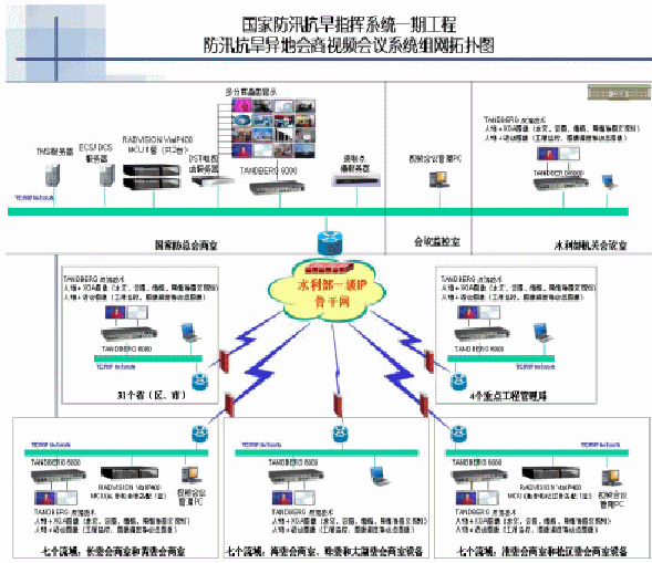 "工欲善其事,必先利其器"。為了推動國家"金水工程"對信息化的要求,2003年,水利部就開始著手籌建國家防汛抗旱指揮視頻會議系統(tǒng)。按照當(dāng)初的項(xiàng)目規(guī)劃,這次視頻會議系統(tǒng)的建設(shè)主要包括水利部、7個(gè)流域機(jī)構(gòu)、31個(gè)省(區(qū)、市)和4個(gè)重點(diǎn)工程局等43個(gè)單位的44個(gè)節(jié)點(diǎn)。