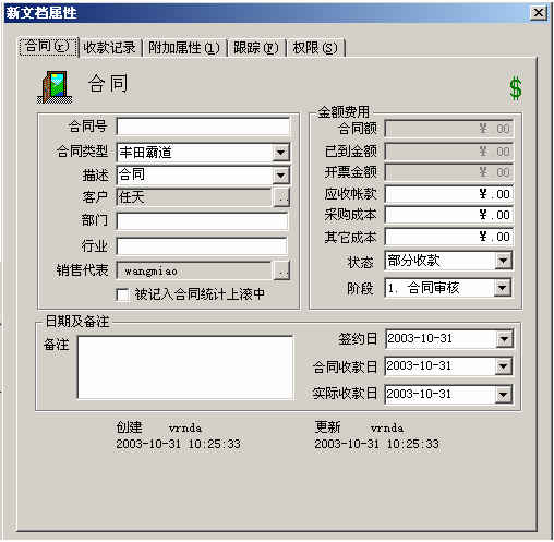 合同基本管理:創(chuàng)建合同、查詢合同(包括查詢銷售業(yè)務(wù)人員自己的合同和查詢所有合同)