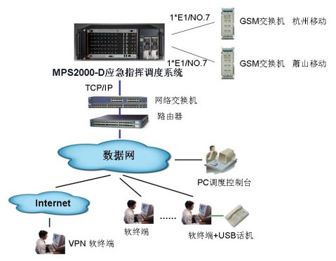 從上示組網(wǎng)圖中可以看到,整套MPS2000-D應(yīng)急指揮調(diào)度系統(tǒng)利用了移動(dòng)網(wǎng)管中心的數(shù)據(jù)網(wǎng)絡(luò)資源,通過(guò)SIP協(xié)議,在各個(gè)PC終端上通過(guò)軟終端的方式接入調(diào)度系統(tǒng),作為IP調(diào)度終端。平時(shí)可將該軟終端作為個(gè)人通訊助理終端,解決用戶(hù)的多種通信需求。并通過(guò)PC調(diào)度臺(tái)來(lái)對(duì)整套系統(tǒng)進(jìn)行應(yīng)急調(diào)度控制。