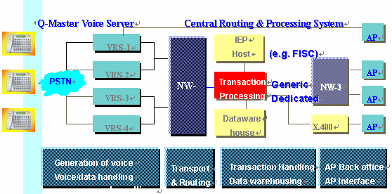 建置在Q-system平臺(tái)上的典型應(yīng)用系統(tǒng)包括eBanking,eTrading,eShoping,信息查詢(xún),便民服務(wù)等等。終端使用者(消費(fèi)者)可經(jīng)由低價(jià)且操作高效率的IA配備,來(lái)獲得各種不同的信息與服務(wù),這些信息與服務(wù)可以是企業(yè)的本業(yè)或是通過(guò)與異業(yè)結(jié)盟所取得的。