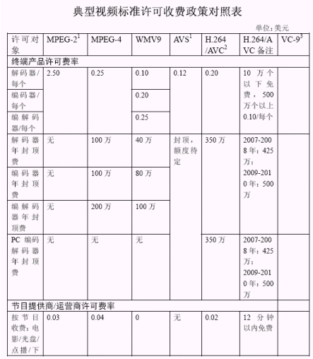 o當(dāng)前由MPEG-LA提供的與MPEG-4類似的任何"基于使用"的許可條款,他們均不會接納。