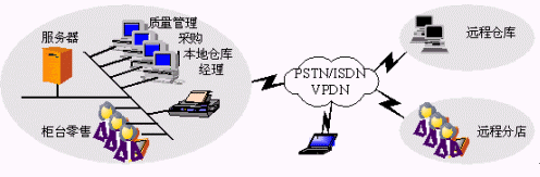 支持遠程庫房、遠程分店以及移動辦公。網絡拓撲結構與連鎖經營企業(yè)基本相同。