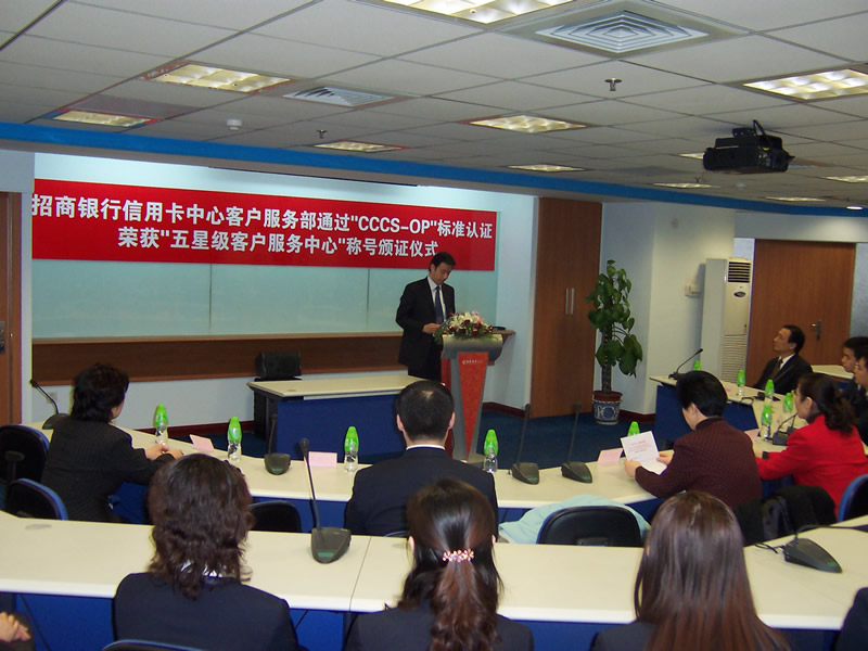 招商銀行信用卡中心客戶服務(wù)中心(800-820-5555)成立于2002年,是集電話服務(wù)熱線、傳真、電子郵件、短信服務(wù)以及互聯(lián)網(wǎng)等客戶溝通渠道于一體的多功能客戶服務(wù)中心,為所有招商銀行信用卡用戶提供365×24×7全年無休的優(yōu)質(zhì)客戶服務(wù),曾榮獲“2004中國最佳呼叫中心”稱號。作為中國銀行業(yè)率先加入CCCS標(biāo)準(zhǔn)認(rèn)證體系的企業(yè),通過此次認(rèn)證,一方面使得招商銀行客戶服務(wù)中心的運(yùn)營管理水平進(jìn)一步得到了提升和改善,實(shí)現(xiàn)規(guī)范化、精細(xì)化;另一方面,CCCS標(biāo)準(zhǔn)也從該公司在客戶服務(wù)和客戶關(guān)系管理方面所積累起來的寶貴實(shí)踐經(jīng)驗(yàn)中汲取了養(yǎng)分,使CCCS標(biāo)準(zhǔn)能夠不斷地完善和發(fā)展。