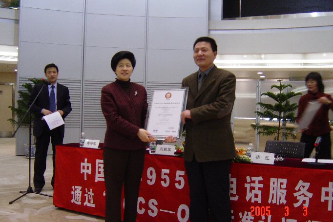 China)組委會(huì)聯(lián)合授予的"2004中國(guó)最佳呼叫中心"榮譽(yù)稱(chēng)號(hào)。
