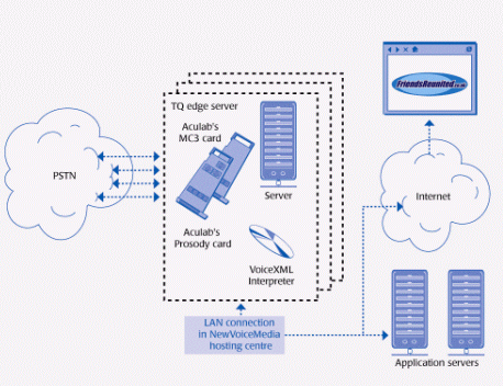 Aculab的Prosody DSP資源板卡最終被用于NVM的VoiceXML解釋器內(nèi)。它既提供數(shù)字網(wǎng)絡(luò)接口,也負(fù)責(zé)語(yǔ)音處理功能,以便Friends Reunited 能夠向其客戶提供新式的語(yǔ)音驅(qū)動(dòng)應(yīng)答業(yè)務(wù)。英國(guó)會(huì)員只需撥打比手機(jī)費(fèi)用還便宜的號(hào)碼0871 271 8000、國(guó)際會(huì)員需撥打 +44 870 055 3222 。會(huì)員輸入ID和密碼后,可留言、也可建立或進(jìn)入某一會(huì)議。由于NVM能夠保持平臺(tái)建立的費(fèi)用不增長(zhǎng),所以用戶呼叫的費(fèi)用可保持在更經(jīng)濟(jì)的范圍內(nèi)。究其原因,他們采用了Aculab硬件,使得交換、會(huì)議和文語(yǔ)轉(zhuǎn)換等語(yǔ)音處理功能都是免費(fèi)獲得的。否則,如果需要支付軟件許可證費(fèi)用,此項(xiàng)目的實(shí)施不會(huì)如此輕松。