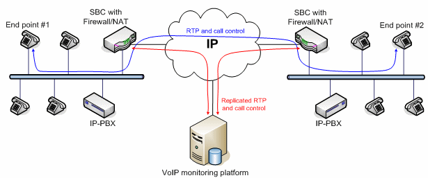 VoIP應(yīng)用的質(zhì)量監(jiān)控分為主動式和被動式兩種實現(xiàn)方式。主動式的系統(tǒng)能產(chǎn)生呼叫,而被動式的系統(tǒng)只是監(jiān)測進行中的呼叫。兩種方法各有優(yōu)勢。VoIP監(jiān)控方案的架構(gòu)取決于網(wǎng)絡(luò)Edge設(shè)備的類型和結(jié)構(gòu)。有些大型企業(yè)采用的VoIP網(wǎng)絡(luò)配備了一種特殊設(shè)備,叫SBC(Session boarder controller),除了完成類似路由器的功能外,還能完成流量分配、數(shù)據(jù)/語音信號加密以及業(yè)務(wù)質(zhì)量控制等功能。此外,通過過濾和替換數(shù)據(jù)包內(nèi)的、與用戶有關(guān)的特定信息,SBC還能隱藏公司的網(wǎng)絡(luò)拓撲結(jié)構(gòu)和用戶信息,不被外部的IP世界所知道。