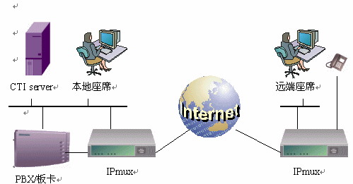 針對目前呼叫中心部署過程中對于IP遠(yuǎn)程座席的需求,北京佳訊飛鴻電氣有限責(zé)任公司推出了系列IPmux設(shè)備。 用戶只需將原有座席的電話線插到IPmux設(shè)備上,通過互聯(lián)網(wǎng),即可將該座席延伸到全球任意地點。