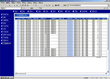 管理人員可能需要對比產(chǎn)品銷售計劃與實際銷售的產(chǎn)品數(shù)量的關系,也有可能要對比某款產(chǎn)品與競爭產(chǎn)品銷售的情況,這時候可以利用產(chǎn)品銷售統(tǒng)計功能。它最大的好處是各項目數(shù)據(jù)普遍關聯(lián),允許任意組合查詢條件(見圖4,點擊下圖,可彈出更清晰的大圖)