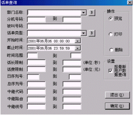 (包括中繼線)進(jìn)行話單查詢、打印電話明細(xì)單。